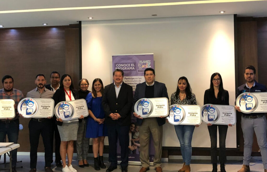 León. Guanajuato. 28 de marzo del 2023.- El Sistema de Salud Gto a través de la Jurisdicción Sanitaria VII entregó 9 insignias Planet Youth a instituciones de la zona por su compromiso y dedicación para prevenir las adicciones en niñas, niños y adolescentes.