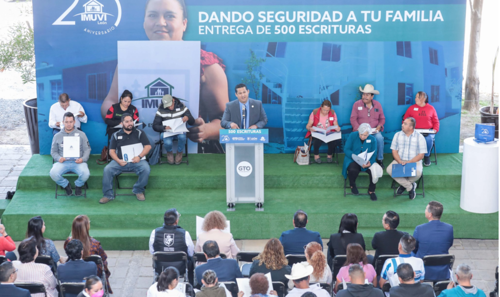 Resaltó que son una importante cantidad de leoneses que se han visto beneficiados con los programas y acciones de regularización de la tenencia de la tierra y otorgamiento de escrituras de lotes de terreno en asentamientos de origen informal.