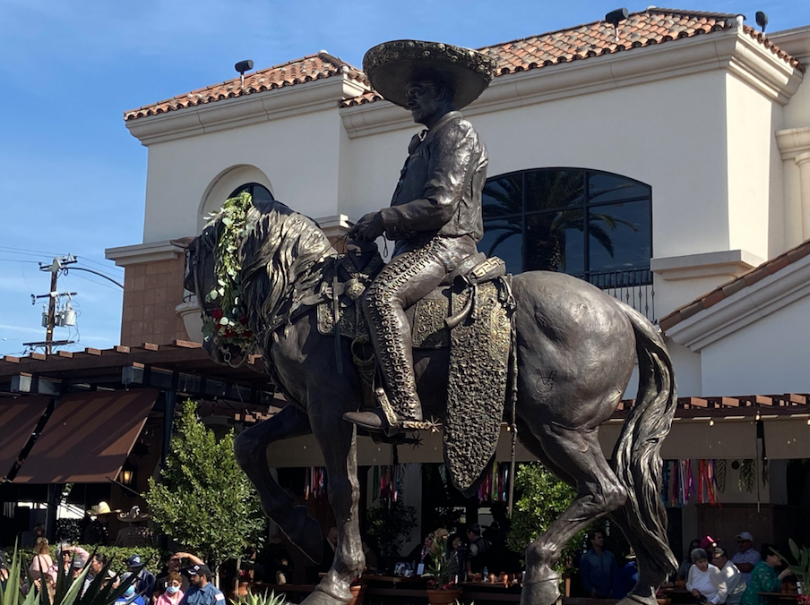 La figura, que es de bronce y pesa dos toneladas, es una réplica de la que hay junto a su tumba en el estado de Jalisco y muestra a ‘Chente’ subido a su caballo.