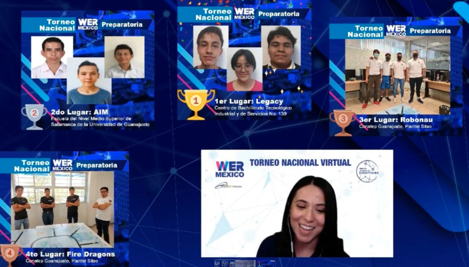 Salamanca, Gto., a 28 de junio de 2021.- El equipo de Robótica Educativa de la Escuela de Nivel Medio Superior (ENMS) de Salamanca, se acreditó como el segundo lugar en el Torneo Nacional de Robótica Educativa WER 2021 y clasificó al Torneo Mundial de la Especialidad WER 2021.