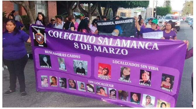 En León marcharon representantes de los colectivos de búsqueda, quienes de manera pacífica marcharon desde el Arco de la Calzada a la presidencia municipal para exigir la localización de sus hijas, hermanas y amigas; así como protección para quienes buscan a sus familiares.