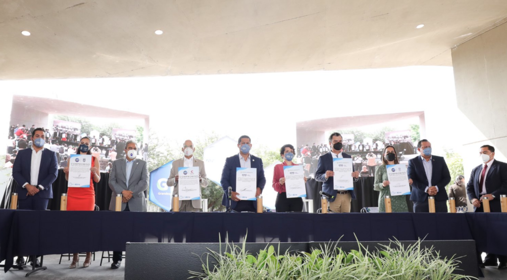 También se firmó el ‘Compromiso Aire Limpio para Guanajuato’, es un convenio cuyo objeto es instrumentar acciones para la prevención, control y reducción de misiones a la atmósfera en establecimientos industriales de jurisdicción estatal.
