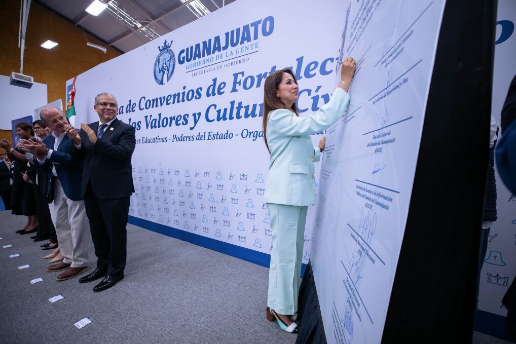 “Hoy, la firma de este convenio reafirma ese compromiso que tenemos desde las universidades, desde los Organismos Autónomos, por seguir fomentando una cultura cívica en todo el territorio de Guanajuato. Necesitamos seguir recuperando los valores, ese faro que es la luz de todos los días en nuestro estado”, dijo la Mandataria Estatal.