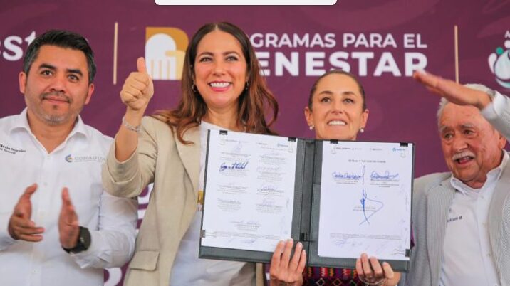 La Presidenta de México, Claudia Sheinbaum Pardo, agradeció a los productores que integran los módulos del Distrito de Riego 011 para la firma de este convenio.