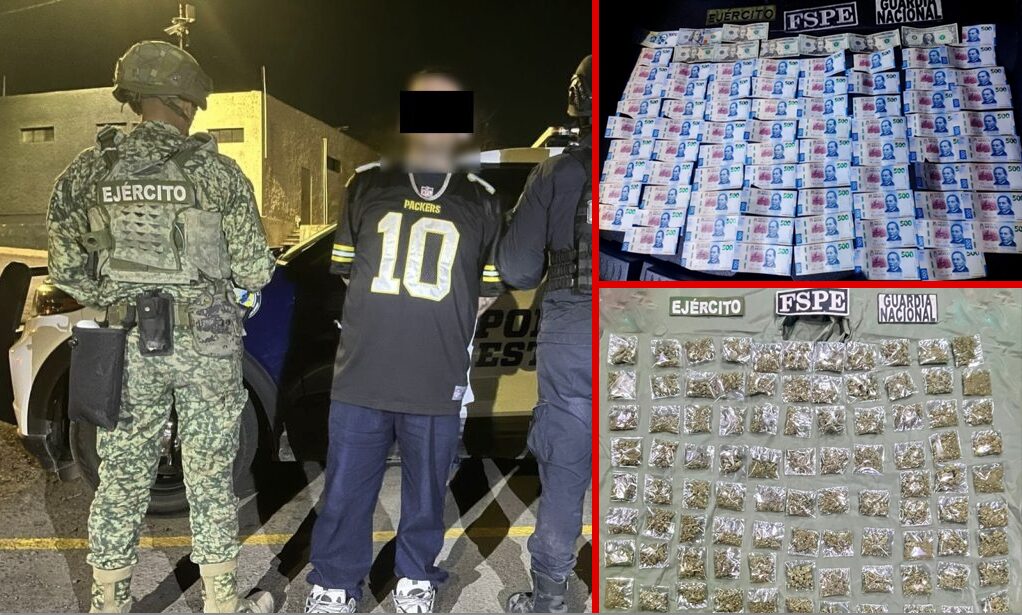 Durante la revisión se identificó a Gilberto “N”, de 32 años, con domicilio en la colonia Las Hilamas, y se localizaron 37 mil pesos en efectivo en billetes de distintas denominaciones y 221 dólares estadounidenses.