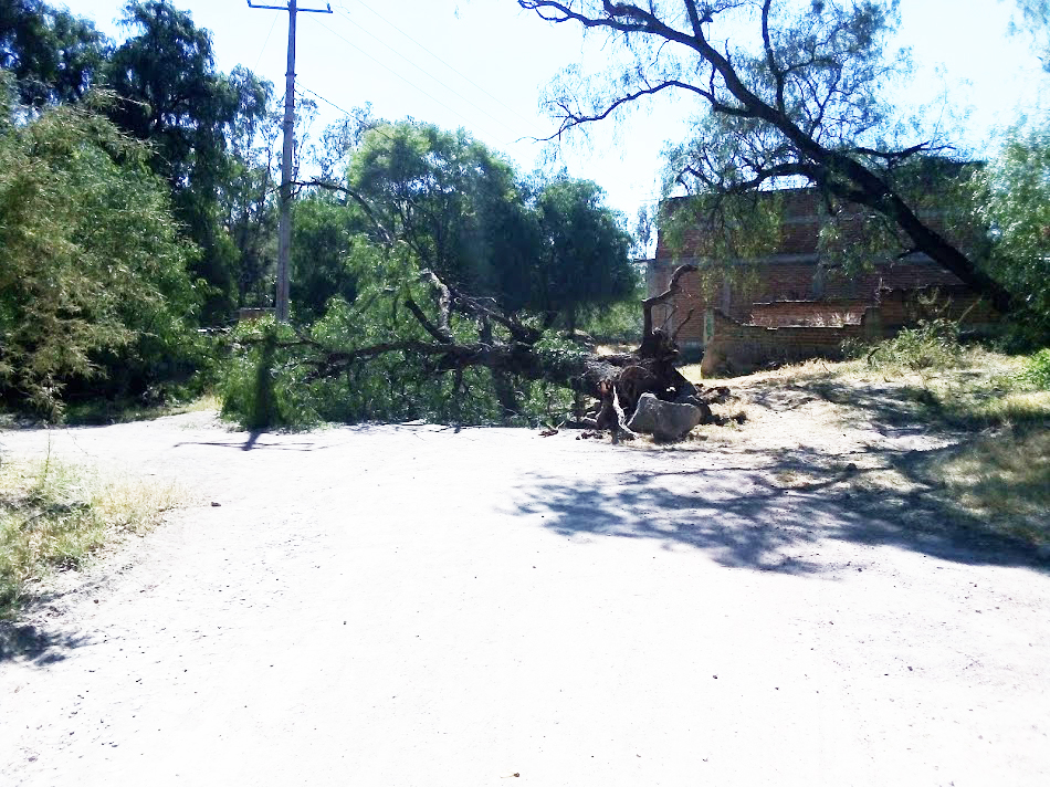En la colonia Los Castillos vecinos avisaron sobre la caída de un «pirul» obstruyendo la calle principal que conecta la calle Calakmul hacia «El Ranchito», así como la explosión de un transformador que dejo sin luz a las calles de la colonia en mención.