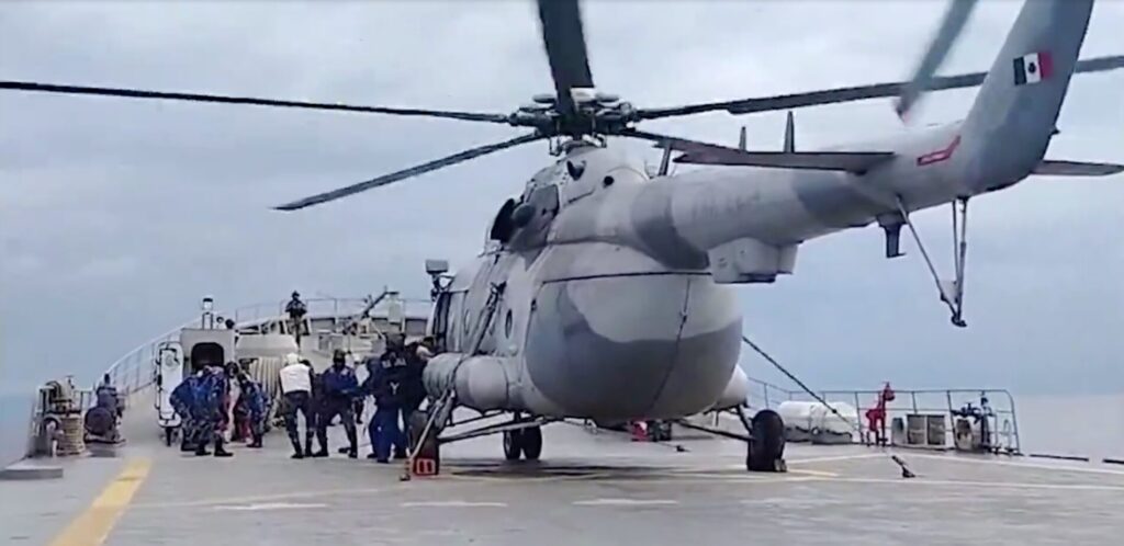 A través de un video, la Secretaría de Marina dio a conocer que fue exitoso el traslado de 34 personas y cuatro mascotas en dos vuelos del helicóptero Mi-17 desde el buque ARM ‘Isla Holbox’ BAL-02 a la embajada de República Dominicana en Haití, debido al cierre del aeropuerto.
