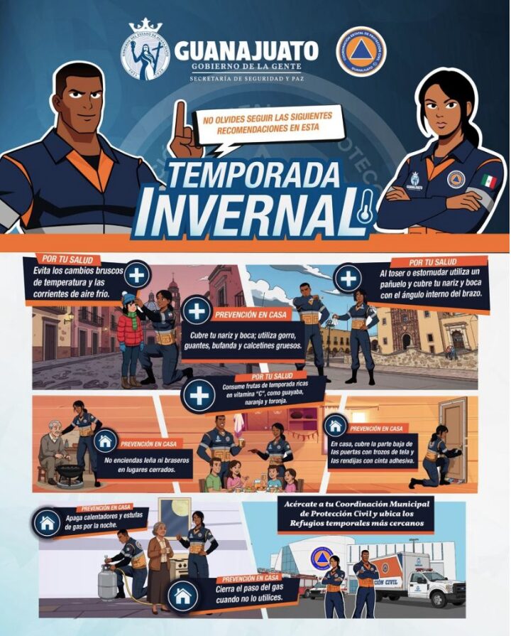 Guanajuato, Gto., 12 Enero 2026.- La Coordinación Estatal de Protección Civil, adscrita a la Secretaría de Seguridad y Paz, alertó por el descenso de temperaturas que se prevé en Guanajuato para esta semana, ante la segunda tormenta invernal de la temporada y el frente frío número 27.