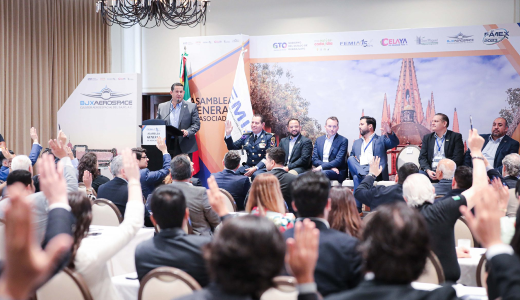 Agradeció también a René Espinosa, Presidente de la Federación Mexicana de la Industria Aeroespacial; así como a Oscar Rodríguez Yáñez, Presidente del Clúster Aeroespacial del Bajío por todas las gestiones realizadas para llevar a cabo esta Asamblea en Guanajuato.