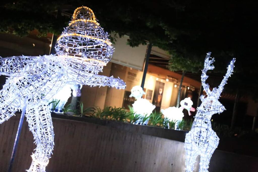 A medida que el espectador vaya realizando el trayecto alumbrado, se maravillará con las representaciones de personajes y figuras de los Reyes Magos, Santa Claus, Renos, esferas, un árbol navideño y peces gigantes, que van desde el 1.5 metros hasta los 8 metros de altura, los cuales se encuentran inmersos en una atmósfera de luz y color que enmarcan la temática estrella, la llegada de la Navidad.