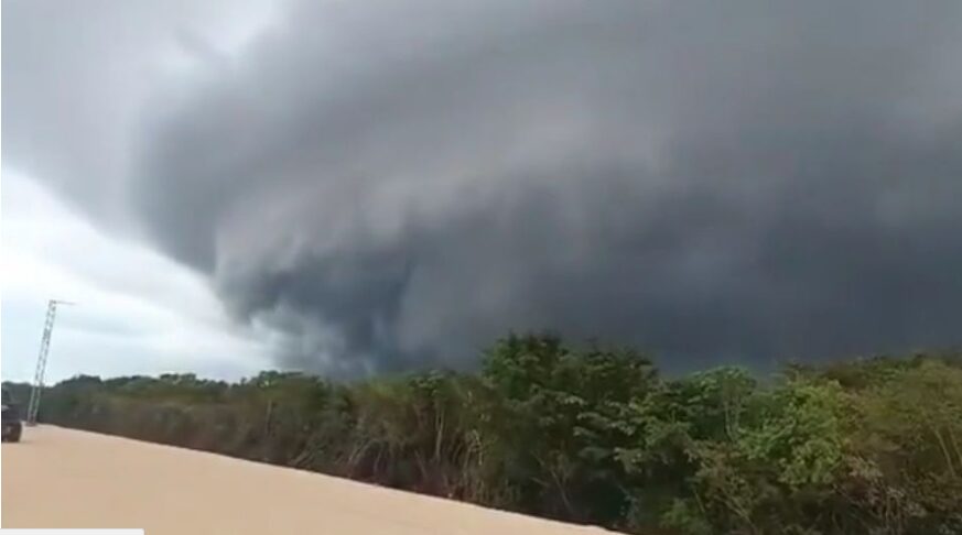 En un video de impresionantes imágenes se captó cómo es la entrada del huracán Beryl en sobre la Península de Yucatán, en el se observan fuertes ráfagas de viento, así como la intensa lluvia, la formación de densas nuevas cargadas de agua y el estruendo de los relámpagos que acompañan la tormenta.