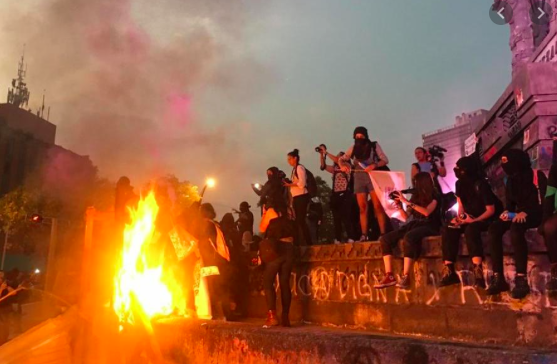 Un vídeo circuló en las redes sociales donde un grupo de manifestantes encapuchadas tomas un cuadro religioso y lo destruyen.