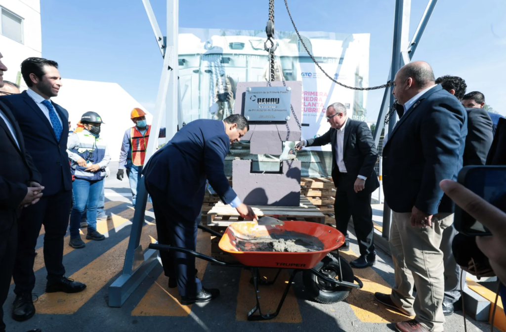 Rodríguez Vallejo dijo que en Apaseo El Grande, REHAU tiene 2 plantas y hoy se está colocando la primera piedra de la que será su tercera planta. La empresa se especializa en la producción de materiales para la fabricación de mobiliario, ventanas, sellos magnéticos, puertas de refrigeración y productos para la industria automotriz.