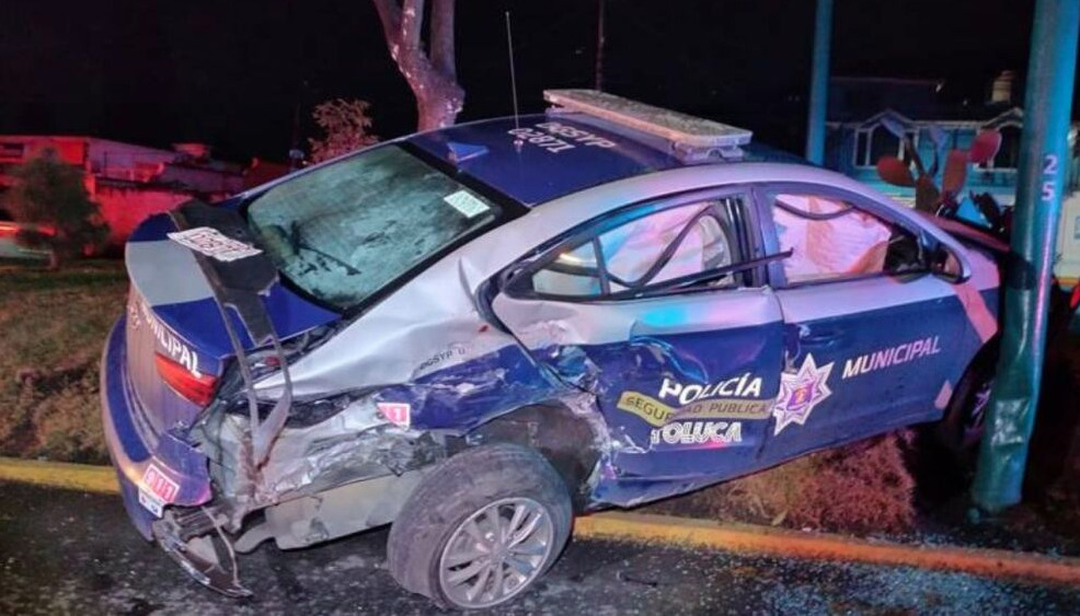 Debido al impacto los cuatro policías resultaron lesionados tuvieron que ser trasladados de forma inmediata al Hospital Regional Issemym para su revisión y atención médica.