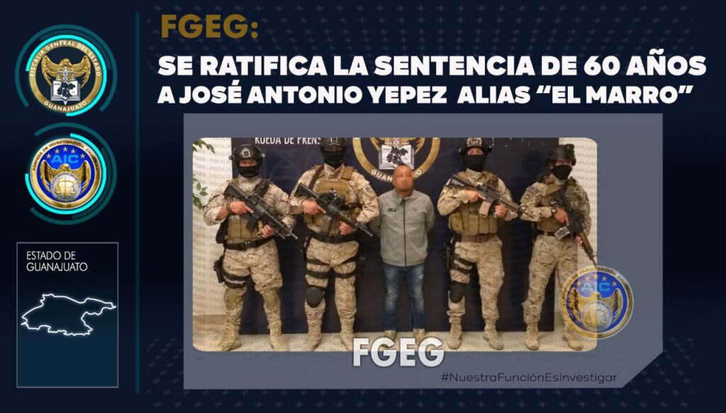 La Fiscalía General del Estado de Guanajuato informó en sus redes sociales que el delincuente continuará cumpliendo su pena de 60 años que le fue otorgada el 14 de enero del presente año.