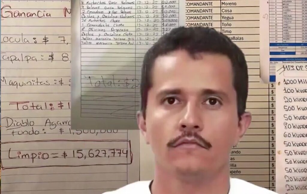 Ciudad de México (28 febrero 2026).- Sueldos de 4 mil pesos semanales para sicarios, presuntos sobornos que cubrían el 20% de la nómina policial de Tapalpa, Jalisco y gastos de 600 mil dólares en regalos para sus nietos, son algunos de los pagos contabilizados en la «narconómina» de Nemesio Oseguera Cervantes, alias “El Mencho”, hallada en la cabaña donde se refugiaba.
