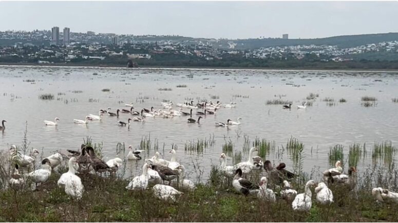 La sequía ocasionó que cerca de 200 patos y gansos que habitan en la Presa de El Palote tuvieran que ser confinados en corrales para evitar su muerte.