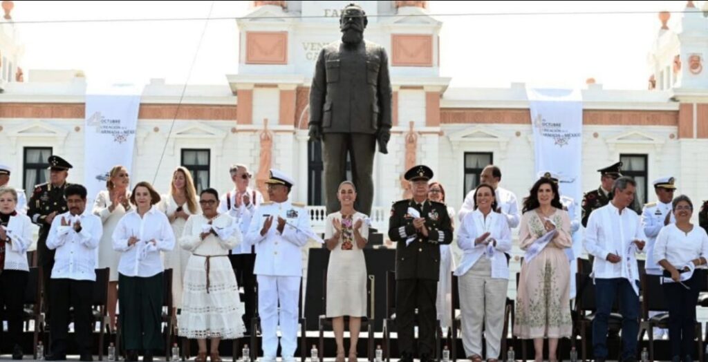 Ciudad de México (4 octubre 2025).- La presidenta, Claudia Sheinbaum Pardo, resaltó que la soberanía de México se conquista, se protege y se defiende día tras día y para ello se necesitan valores como el honor, la lealtad, el deber, el patriotismo y la honestidad, esto en la ceremonia por los 204 años del nacimiento de la Armada de México y los 201 años de la promulgación de la Constitución de 1824, que se llevó a cabo en el puerto de Veracruz.