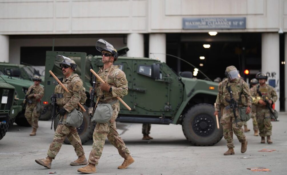 Los Ángeles (8 junio 2025).- Han comenzado a llegar a Los Ángeles efectivos de la Guardia Nacional enviados por orden del presidente Donald Trump en respuesta a los enfrentamientos de los últimos días entre las autoridades federales de inmigración y manifestantes que buscan bloquear las deportaciones.