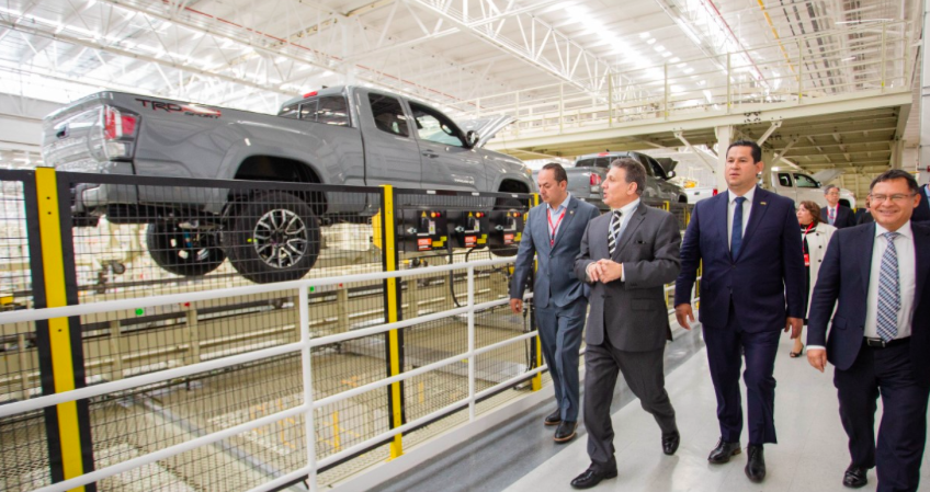 Esta planta ubicada en Apaseo El Grande, es la primera a nivel mundial diseñada y construida con su nueva arquitectura Global de producción; aquí se fabricarán 100 mil unidades TACOMA cuando alcance su mayor capacidad, señaló el Mandatario.
