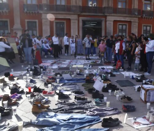 En León fue en la Plaza de los Mártires donde se encendieron 400 velas en memoria de las víctimas, así como expusieron sus pertenencias a fin de concientizar a la población en un grito desesperado.