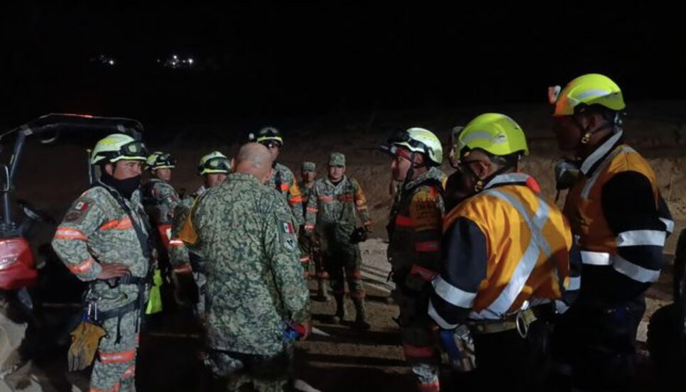 Durante toda la noche, las brigadas especializadas de la Secretaría de la Defensa Nacional (Defensa) y de la empresa Industrial Minera Sinaloa han continuado avanzando en el proceso de exploración de las rampas de la mina.