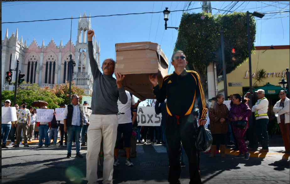 La marcha comenzó a las 10 de la mañana con pancartas y fue encabezada con un ataúd de muerto.