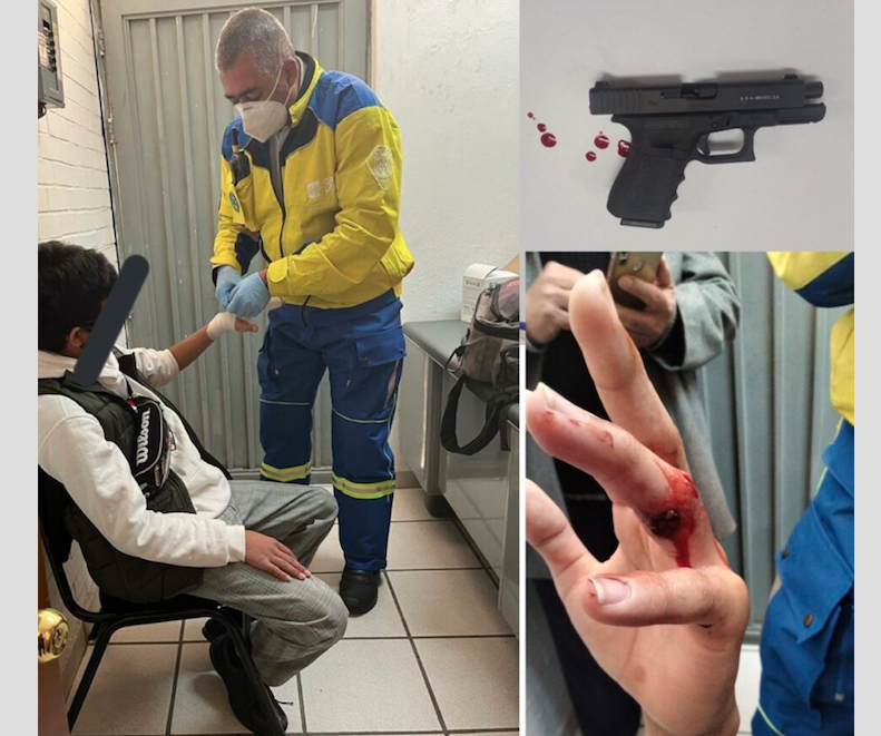 Los paramédicos del ERUM valoraron la condición del alumno, y se le diagnosticó una lesión en el dedo anular y meñique izquierdo, por lo que fue trasladado desde la escuela de Iztapalapa a un hospital para su atención inmediata.