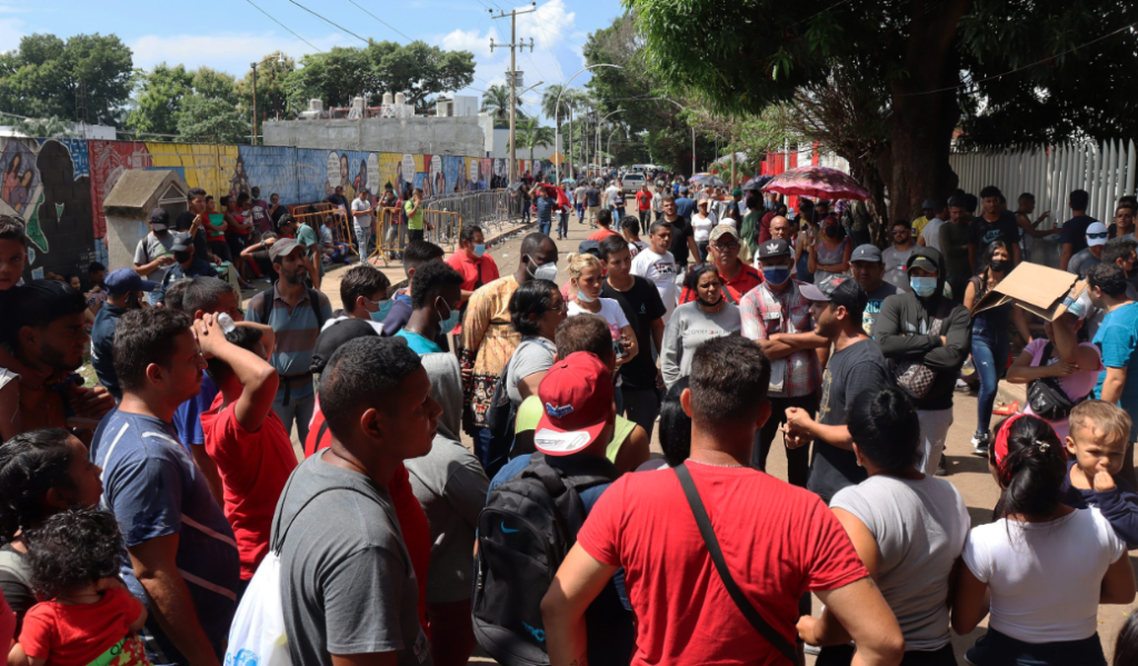 Este grupo de personas, en su mayoría de Venezuela, Centroamérica, Haití, Colombia, llevan varios días varados en espera de la atención del INM del Gobierno, pero se han desesperado porque en Tapachula, en los límites con Guatemala, no pueden costear hospedaje, alimentos y transporte.