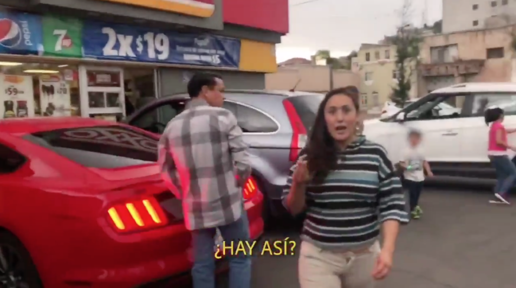 Testigos del hecho la increparon y la reacción fue de insultarlos, seguido después la señora encara a quien graba el video persiguiéndolo varias metros para posteriormente acusarlo de haberla «manoseado».
