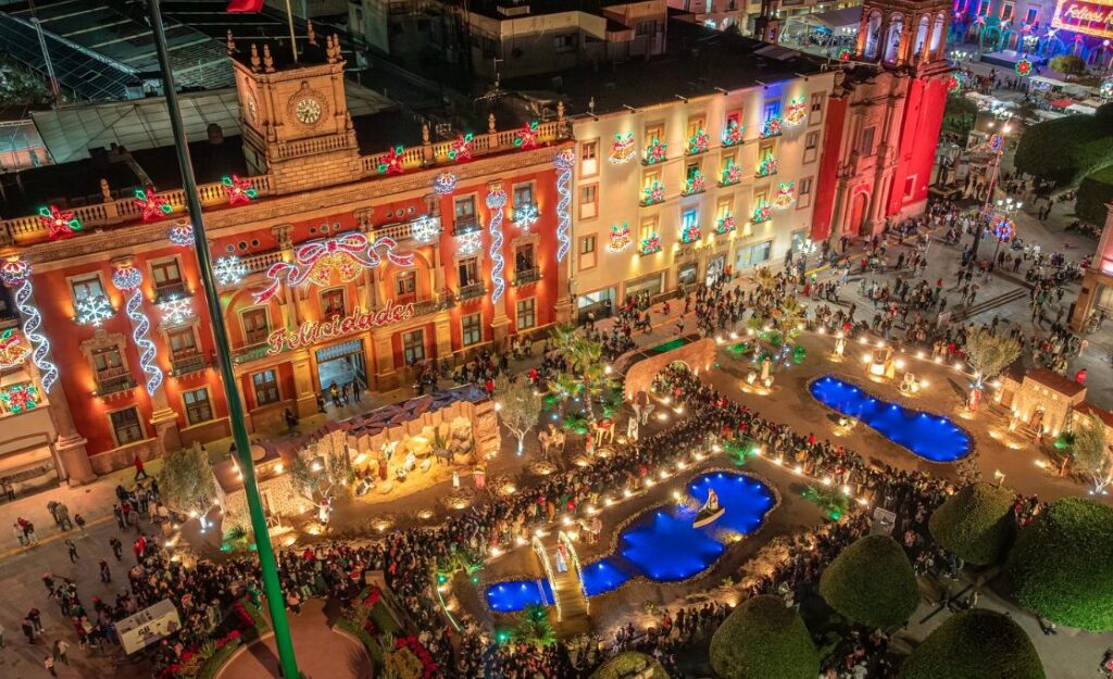 En las noches se puede disfrutar con la decoración de luces navideñas en las plazas públicas de la ciudad, lo que anima el espíritu de la Navidad.