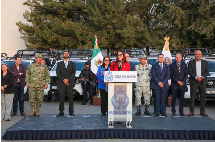 Silao, Gto. 18 de diciembre de 2024.- La gobernadora Libia Dennise García Muñoz Ledo, dijo que no se bajará la guardia en el combate a la delincuencia, por lo que se está fortaleciendo a las corporaciones policiaca con equipamiento.