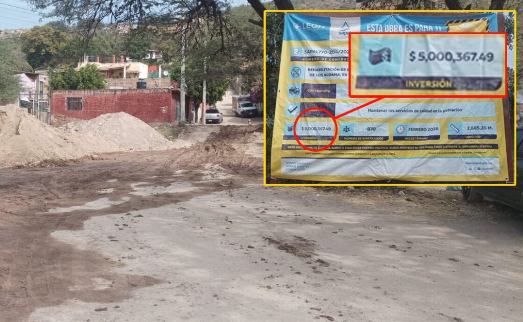 León, Gto. (25 noviembre 2025).- Las obras de rehabilitación de la tubería del agua potable en las colonias Paso del Río de los Castillos y Castillo Azul han generado molestias y dudas por la alta inversión de 5 millones para poner un tubo.