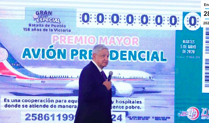 Es un hecho el avión presidencial será rifado, a partir de 15 días comenzará la venta de boletos a través de la Lotería Nacional.