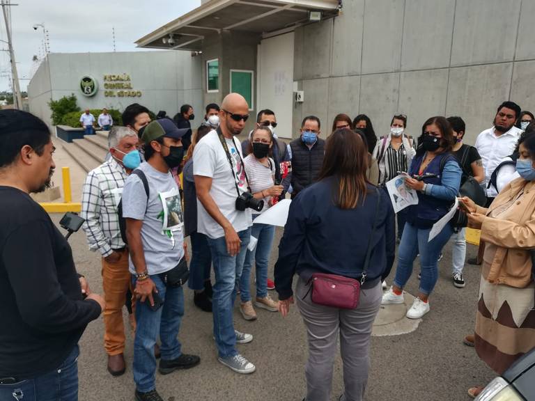 Guanajuato, Gto. (25 Julio 2022).- El empresario zapatero sigue prófugo, es acusado de asesinar a ex camarógrafo de TV4, Enrique Sosa Martínez. Este lunes periodistas se plantaron de manera pacífica afuera de las instalaciones de la Fiscalía General de Guanajuato para pedir justicia.