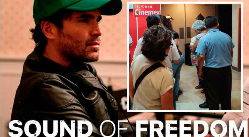 El actor promovió su película «Sonido de Libertad» en los cines ubicados en el bulevar Mariano Escobedo.