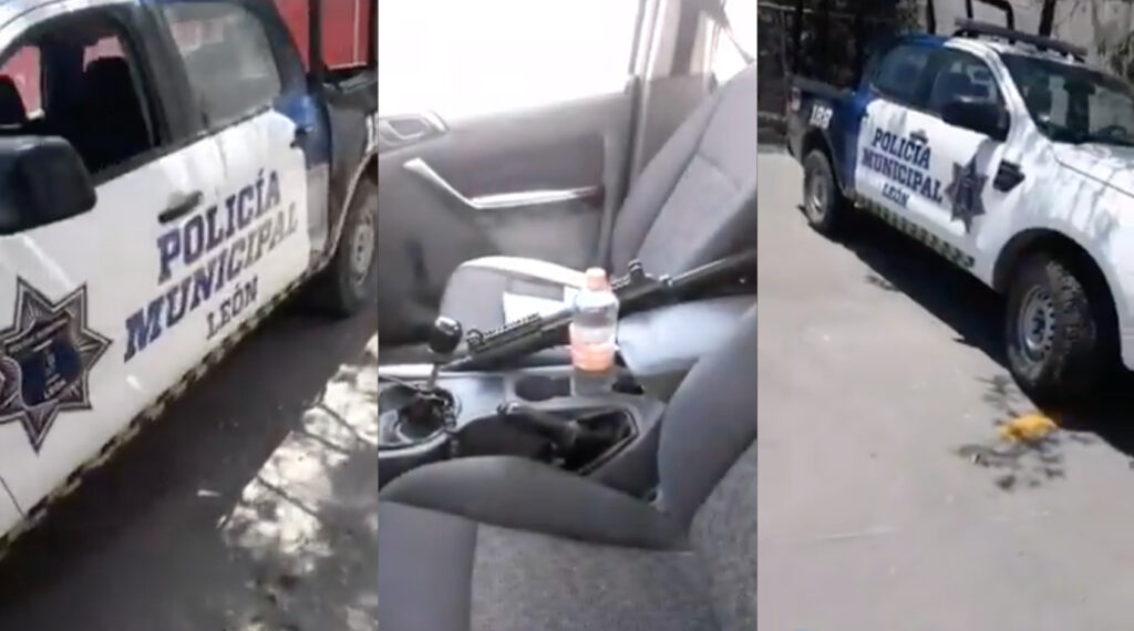 León, Gto (3 mayo 2021).- En redes sociales se viralizó un video en el cual elementos de la Policía Municipal de León dejan sus armas de fuego en la unidad para ir a comer.