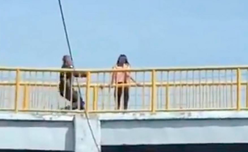 Hablaron con ella pero no la convencían, poco a poco fueron acercándoselo hasta que lograron tomarla y posteriormente la bajaron del puente.