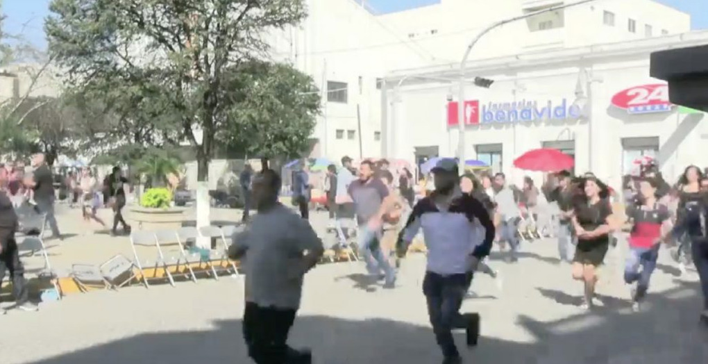 Linares, Nuevo León 20 Noviembre 2023.- Un desfile conmemorativo por el aniversario del 20 de Noviembre de la Revolución Mexicana, fue suspendido por una balacera. Asistentes corrieron a resguardarse de los disparos.