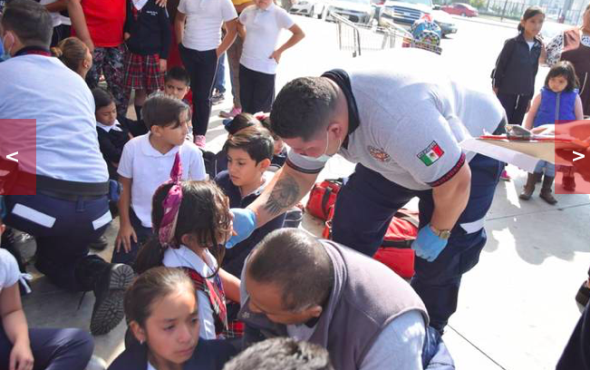 al lugar arribaron cuerpos de emergencia para atender el estado de salud de los estudiantes, así como de Protección Civil para atender las causas.