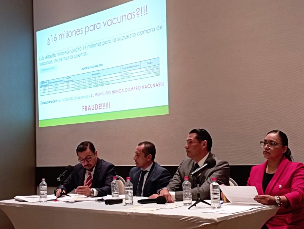 El presidente municipal, explicó que la investigación administrativa documenta venta de terrenos municipales a precios inferiores a los peritajes, permutas de terrenos con pérdidas para el Municipio y permutas de áreas de donación en condiciones ventajosas para fraccionadores particulares.