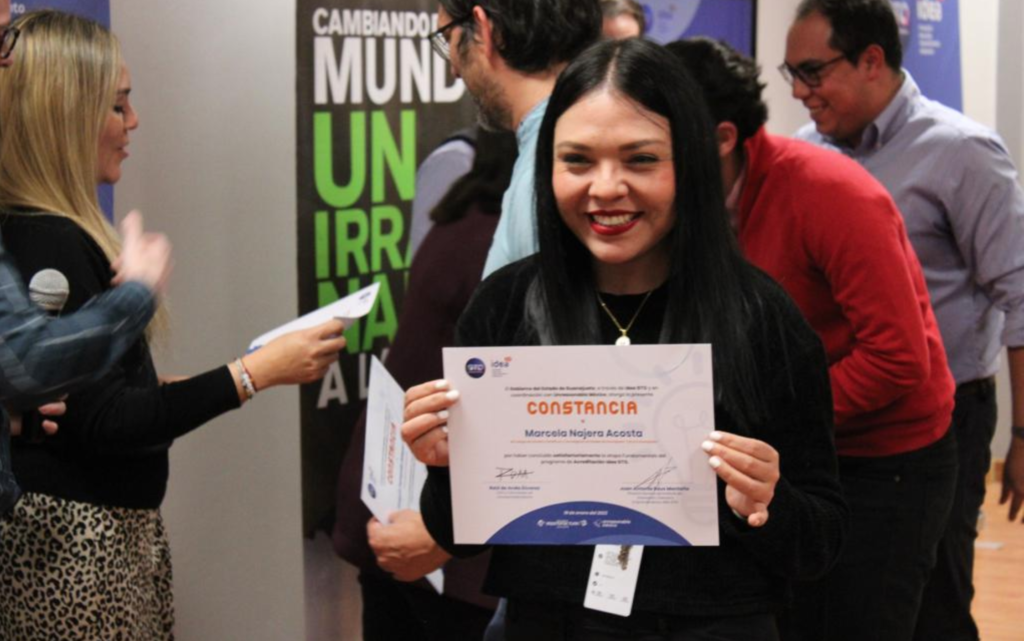 Irapuato, a 26 de septiembre de 2023.- Se presentó el Modelo de Incubación en Guanajuato para fortalecer el emprendimiento en el estado, donde destacaron los reconocimientos a los participantes de la primera etapa del programa de “Acreditación de Incubadoras y Aceleradoras del Valle de la Mentefactura” resultado de la alianza entre el instituto de Innovación Ciencia y Emprendimiento para la Competitividad del Estado de Guanajuato (IDEA GTO) y Unreasonable México.