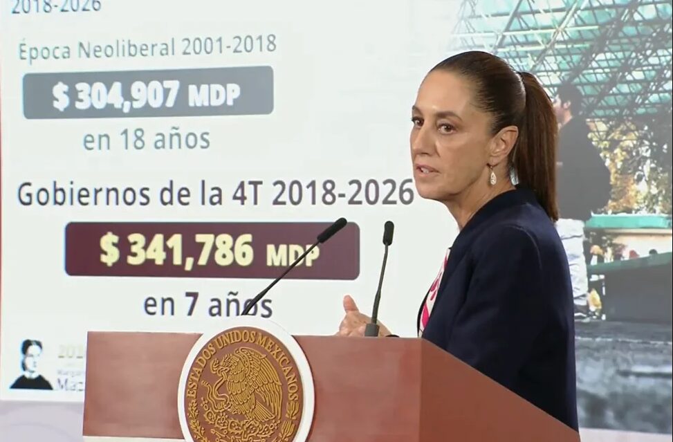 CDMX 6 Abril 2026.- La Presidenta de México, Claudia Sheinbaum, destacó que al final de su sexenio se habrán invertido 350 mil millones de pesos (mdp) en infraestructura educativa, ya que la educación pública es centro de la Cuarta Transformación, la cual, en siete años, de 2019 a 2026, ha destinado 341 mil 786 mdp a este sector, mientras que en 18 años de la época neoliberal tan solo se invirtieron 304 mil 907 mdp.
