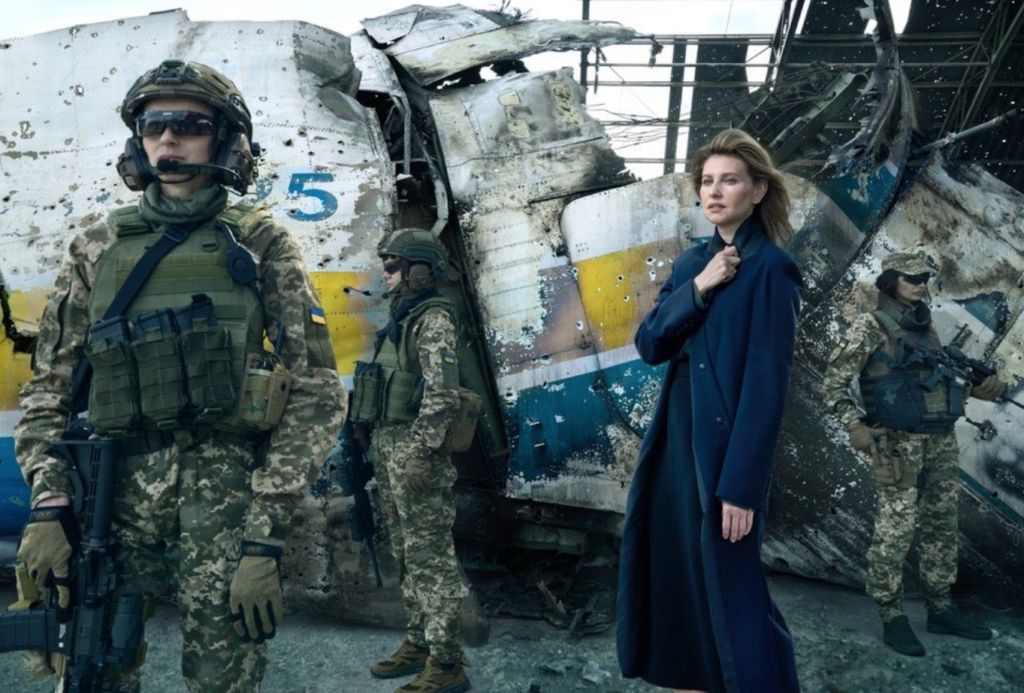 Asimismo, la periodista Donanio destaca la participación de Zelenska en los medios y su papel activo en la diplomacia del conflicto, ya que los principales actores han sido hombres (Vladímir Putin, Joe Biden, Boris Johnson, Olaf Scholz).