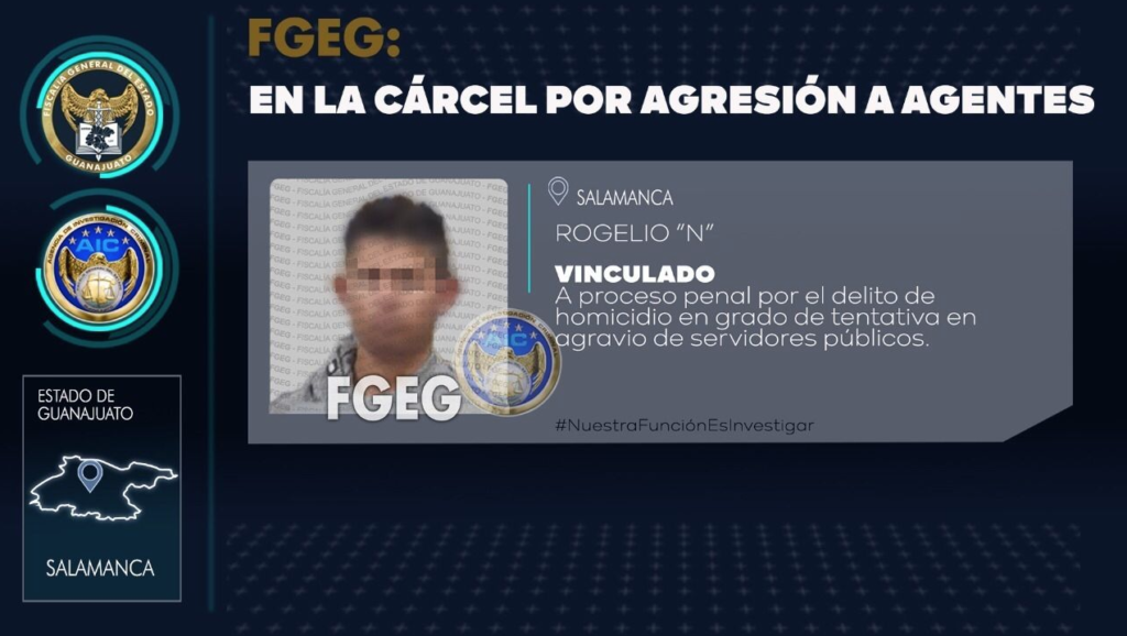 De manera posterior, uno de los sujetos que agredieron a los elementos, identificado como ROGELIO “N”, fue detenido en un operativo de búsqueda desplegado por agentes de Investigación Criminal con apoyo de elementos del Grupo Táctico Guanajuato, de la Secretaría de Seguridad Pública del Estado, en un lugar conocido como Las Rosas, en la comunidad de San Agustín de Sauz, en el municipio de Valle de Santiago.