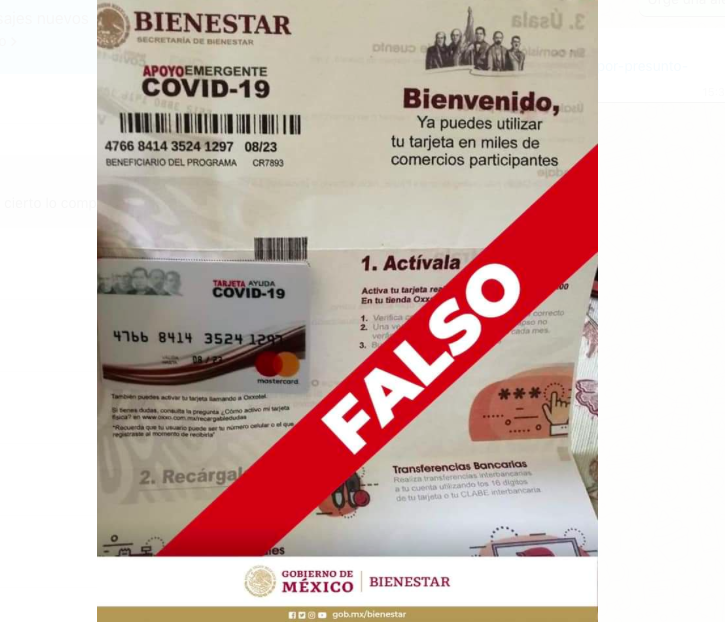 Y aunque la Secretaría del Bienestar ya interpuso una denuncia con quien resulte responsable de delito, las tarjetas se promocionan en redes sociales y se comparten a través de whatsApss.