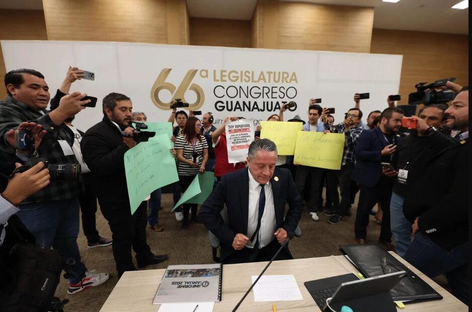 Guanajuato, Gto. (10 marzo 2026).- El gremio periodístico de la capital del Estado, se manifestó ante el fiscal Estatal de Guanajuato, Gerardo Vázquez Alatriste, para exigir se garantice el derecho a la información, esto previo a su comparecencia y rendición de cuentas ante el Congreso local.