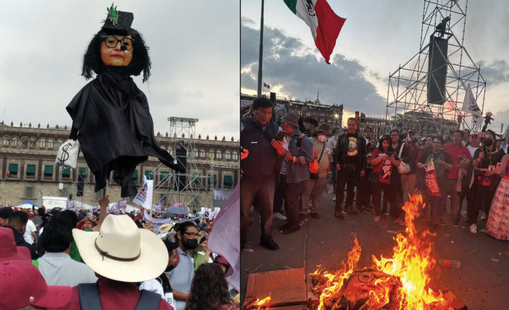 CDMX 18 Marzo 2023.- Por medio de videos difundidos en redes sociales la tarde del sábado 18 de marzo, se pueden ver a asistentes a la congregación en el Zócalo, por el 85 Aniversario de la Expropiación Petrolera, quemando una piñata con la imagen de la presidenta de la Suprema Corte de la Justicia de la Nación (SCJN), Norma Piña.