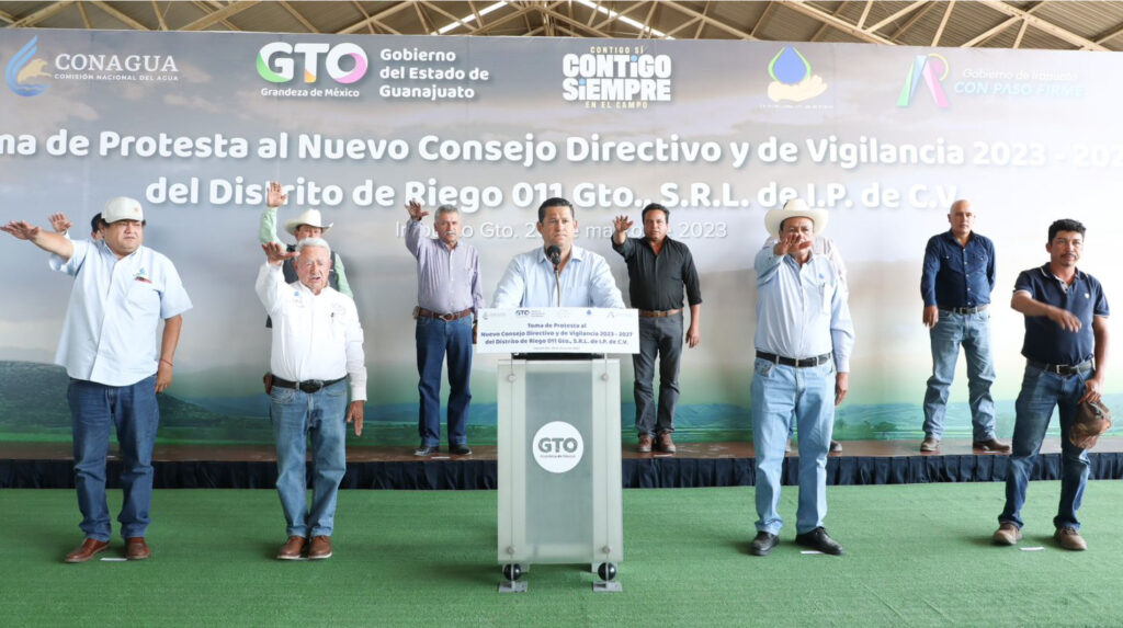 Irapuato, Gto. 28 de marzo de 2023.- Este año estamos creciendo con alrededor de mil doscientos millones de pesos para el campo de Guanajuato porque se lo merecen, así lo dijo el Gobernador de Guanajuato, Diego Sinhue Rodríguez Vallejo, durante la Toma de Protesta del Consejo Directivo y de Vigilancia del Distrito de Riego 011 (DR 011) 2023-2027.