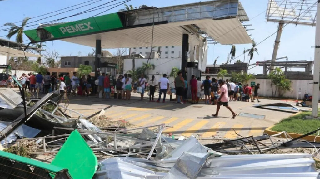 Acapulco, Guerrero 3 Noviembre 2023.- Petróleos Mexicanos reporta 36 gasolineras activas de 72 registradas, lo que representa un 50 por ciento de abastecimiento de combustibles a nueve días del huracán Otis, informó la coordinadora nacional de Protección Civil, Laura Velázquez Alzúa, al presidente Andrés Manuel López Obrador durante el informe de acciones del Gobierno de México enfocadas al apoyo y reconstrucción de Acapulco y Coyuca de Benítez.